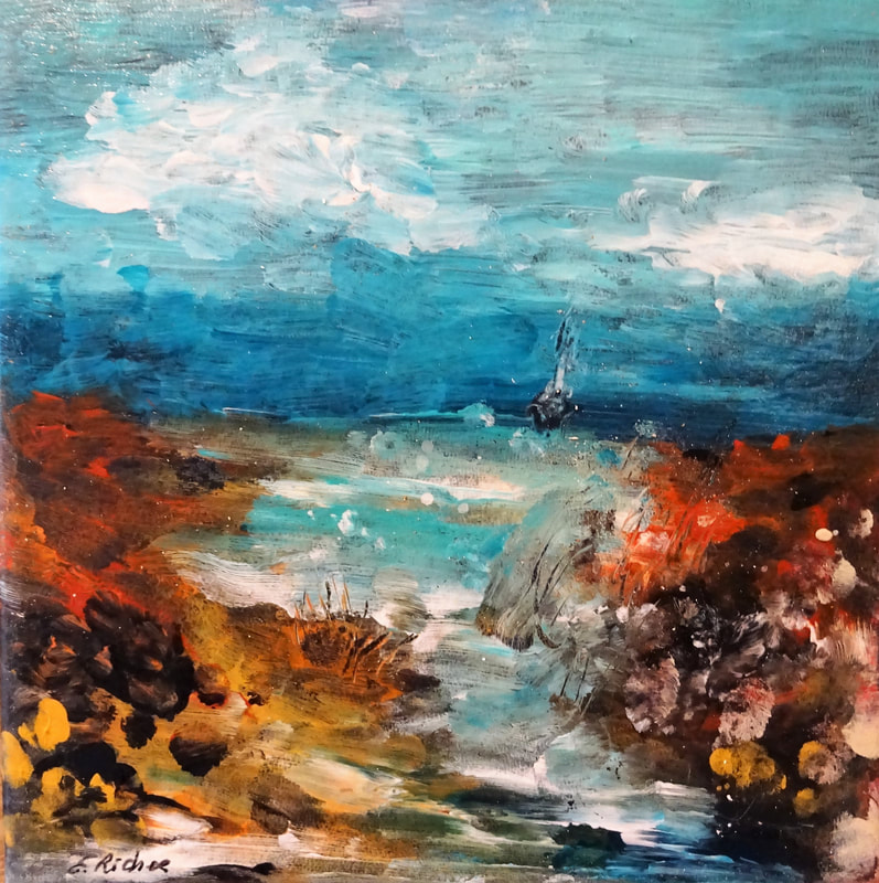 Descriptif : Evelyne Richer a d'abord pratiqué l'aquarelle avant de se tourner vers des compositions plus abstraites en acrylique. Elle organise depuis 2005 des ateliers au sein de l'Atelier Tuffe Art, à destination des adultes.
