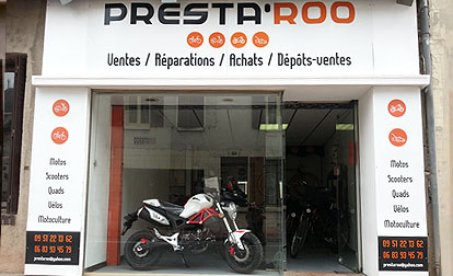 Descriptif : LOCATIONS PRESTAROO va vous faire redécouvrir l’univers du vélo et le plaisir de pédaler. 100% pratique : pour faire des achats, pour le week-end, pour offrir une belle sortie à vos enfants. Plusieurs types de vélo: vélos dits traditionnels (VTC), VAE (à assistance électrique), tandem, vélo enfant, porte bébé ainsi que des vélos adaptés aux personnes à mobilité réduite: VAE petite taille, tricycle électrique, guidon permettant d'installer un fauteuil roulant sur un VAE possibilité de partir en balade avec un panier pique nique installé à l'arrière de votre vélo avec des produits des producteurs locaux REPARATIONS PRESTAROO assure les réparations pour tous vos vélos, quads, motos, etc… – Entretien et réparation Vente de vélos neufs et d'occasion Vente motos, scooters neufs ou d'occasion
